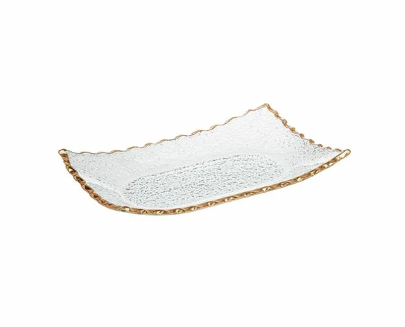 Elevating the look of any table setting, this textured glass platter features a hand painted gold edge. Made of non-leaded crystal.