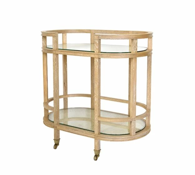 With a nod to British West Indies style, the Zaina features woven caned shelves within a solid oak frame. Rich, natural cerused finish provides a great tone on tone color story. Each shelf is protected by a glass top, so it’s easy clean-up for amateur mixologists. Metal casters allow for easy portability, so hosting your […]